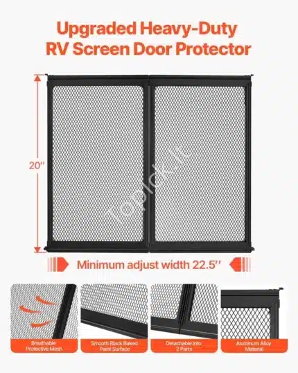 Juodas aliuminio RV durų tinklelis nuo vabzdžių, skirtas naminiams gyvūnams, 571 x 508 mm Šis tvirtas RV durų tinklelis nuo