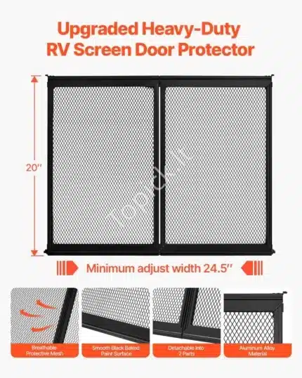 Juodas aliuminio RV durų tinklelis nuo vabzdžių, skirtas naminiams gyvūnams, 622 x 508 mm Šis tvirtas RV durų tinklelis nuo