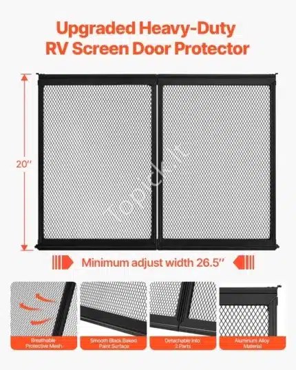 Juodas aliuminio RV durų tinklelis nuo vabzdžių, skirtas naminiams gyvūnams, 673 x 508 mm Šis tvirtas RV durų tinklelis nuo