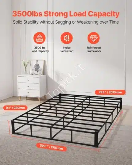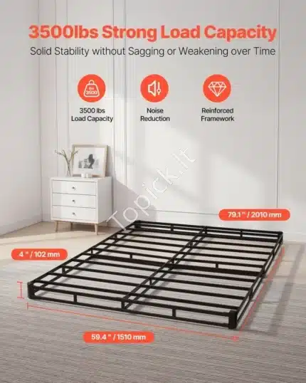 Žemo Profilio „Queen Size“ Lovos Pagrindas (Boxspring), Metalinis Rėmas, Nuimamas Pilkas Audinys, 201 x 151 x 10,2 cm Minimalistinis Dizainas Ir Maksimalus Tvirumas Jūsų Miegui