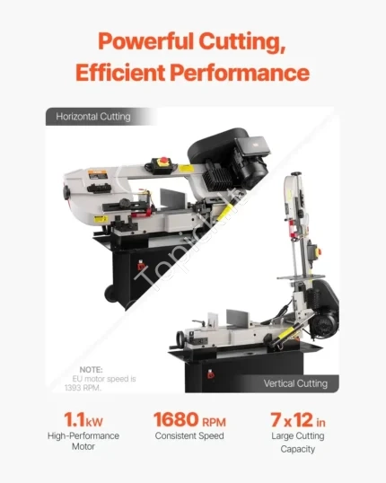 Galingas Metalo Juostinis Pjūklas 1,1kW, Pjovimas 170×210mm, 4 Greičiai, 0−45∘ Kampinis, Horizontalus/Vertikalus Kai kalba pasisuka apie patikimą ir precizišką pjovimą,