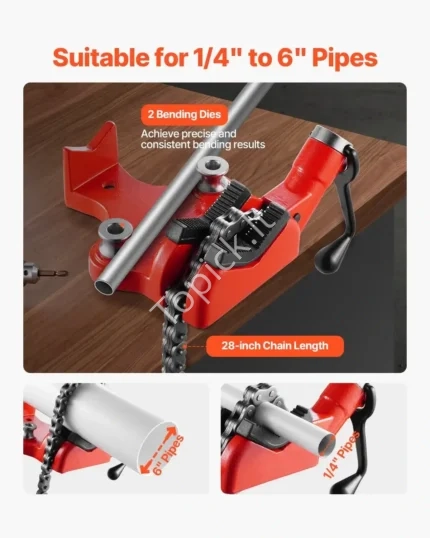 Tvirtas Stacionarus Grandininis Spaustuvas ⛓️ (6,35 mm – 152,4 mm), Ketaus, Su Lenktuvais, Platus Vamzdžių Diapazonas ⚙️🔩 Reikia tvirto ir
