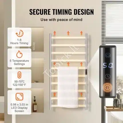 Šildomas elektrinis rankšluosčių džiovintuvas-gyvatukas, 6 strypai, 61 x 50 cm, nerūdijančio plieno Šilti ir sausi rankšluosčiai visada po ranka! Atraskite