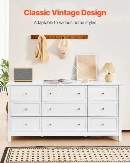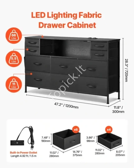 Plati Komoda su 6 Audinio Stalčiais,  Ruda, 130 x 39 x 69 cm, TV Stovas, Industrialus Stilius Ši kaimiško stiliaus