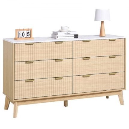 Plati Komoda su 6 Audinio Stalčiais,  Ruda, 130 x 39 x 69 cm