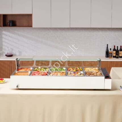 Greitas įkaitimas ir ilgai išliekanti šiluma: Šiame gražiai suprojektuotame stikliniu dengtu maisto šildytuvu yra galingas 1500 W nerūdijančio plieno šildymo
