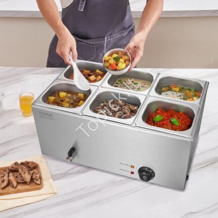 Greitas įkaitinimas ir ilgai išliekanti šiluma: Šiame gražiai suprojektuotame stikliniu dengtu maisto šildytuvu yra galingas 1700 vatų nerūdijančio plieno šildymo