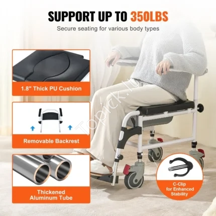 Dušo/Tualeto Vežimėlis Su Ratukais, 4-in-1, Reguliuojamas Aukštis (49–57 cm), Aliuminis, Keliamoji Galia 158.8 kg Šis 4-in-1 universalus vežimėlis yra skirtas