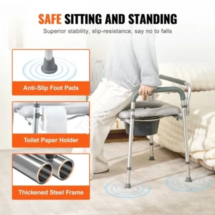 Tualeto Kėdė/Naktipuodis Su Sėdyne, Plieninis Rėmas, 7 Aukščių Reguliavimas (44–59 cm), Keliamoji Galia 158.8 kg Ieškai patikimo ir patogaus pagalbininko,
