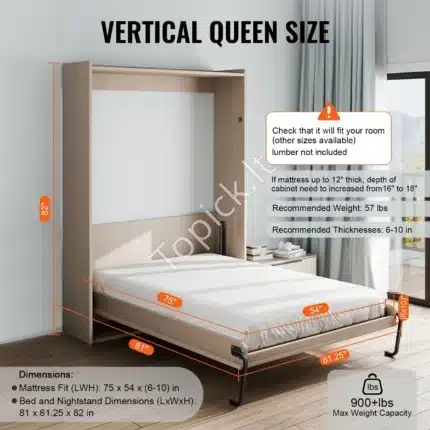 „Murphy” lovos spyruoklių mechanizmo rinkinys, baltas, vertikalus. Vertikalus dizainas Vertikalios sieninės lovos konstrukcija taupo vietą, todėl puikiai tinka didelėms ar