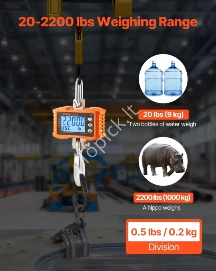 Patvari konstrukcija: skaitmeninės kraninės svarstyklės pagamintos iš aukštos kokybės aliuminio ir yra labai stabilios. Tvirtas plieninis kablys turi didelę apkrovą.