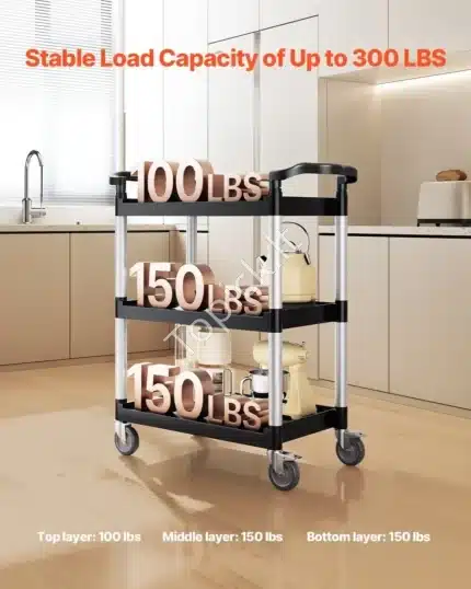 Universalus Triaukštis Serviso Vežimėlis Su Ratukais, Juodas Plastikas / Aliuminis, 88x41x99 cm, 136 kg Keliamoji Galia Trijų Aukštų Galiūnas Tavo Tvarkai Atsibodo