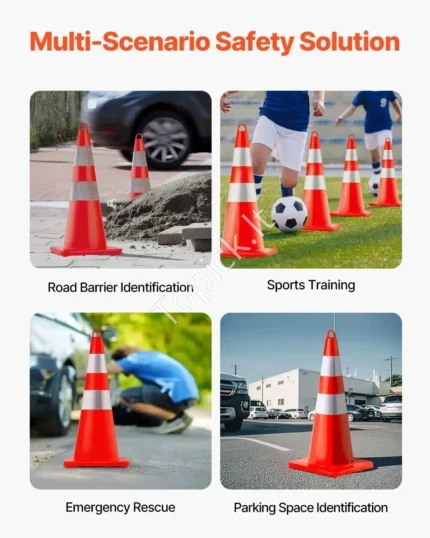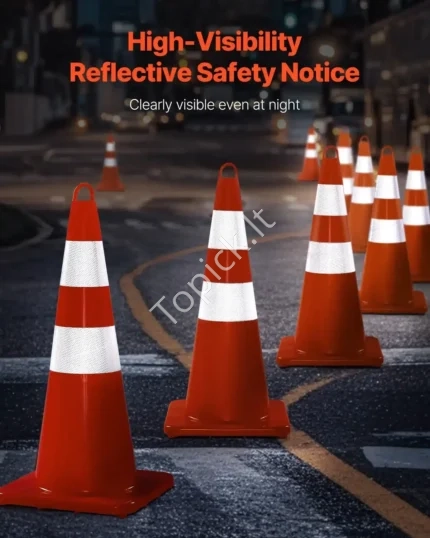 Universalus PVC Eismo Kūgių Rinkinys (12 vnt.), Oranžiniai, 45.7 cm Aukščio, Su Atšvaitu, 28 x 28 cm PVC Pagrindas 🚗🚧🎓✅