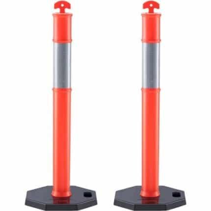 Reguliuojamo Aukščio Saugos Stulpų Rinkinys (6 vnt.), Raudona/Balta, 86 cm, Pripildomas Vandeniu/Smėliu, Su Grandine 🛑🚧🔗6️⃣ Reikia didesnio komplekto, kad greitai