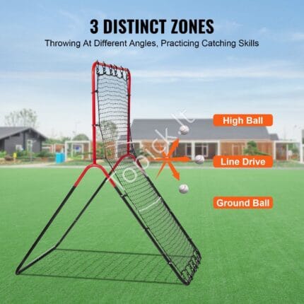 Metimų taikinys su 9 kišenėmis – treniruočių tinklas beisbolui ir softbolui, nešiojamas, greitai surenkamas pitching tinklas vaikams ir suaugusiems (raudonas)