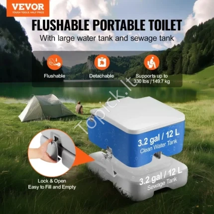Kompaktiškas Nešiojamas Kempingo Tualetas 12 L (Atliekų Talpa)