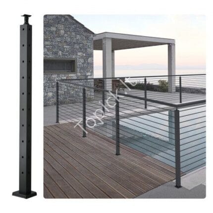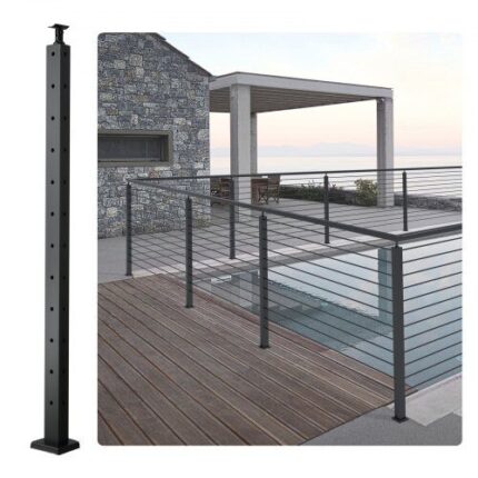 Aliuminio turėklai su horizontaliomis skersinėmis juostomis, skirti 2–3 pakopų laiptams, 91,4 x 89,5 cm Kokybiški aliuminio turėklai su dekoratyvinėmis skersinėmis