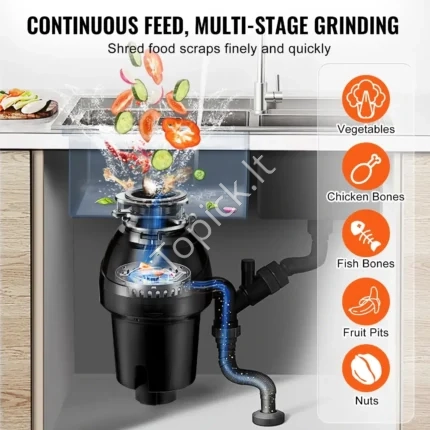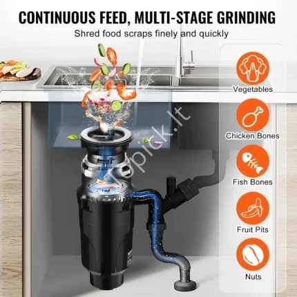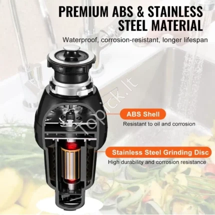Galingas Virtuvės Atliekų Smulkintuvas 3/4 AG (550W), Tylus ir Greitas, Nerūdijančio Plieno Šlifavimo Sistema, Matmenys: 185×185×395 mm Atsisveikink su maisto