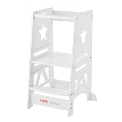 Mokymosi Bokštelis/Pakopa Vaikams, 3 Aukščių Reguliuojama Platforma, Balta, Bambukas Suteik savo mažyliui galimybę saugiai prisijungti prie šeimos veiklos! Šis mokymosi