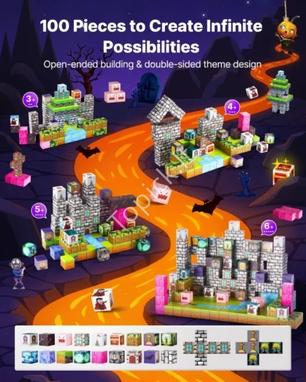 Magnetiniai Konstruktoriai Vaikams 100 Dalių (STEM), „Kapo/Zombių“ Tema, Montessori Stilius, (Maks. 25 x 25 x 25 mm) Ieškai dovanos, kuri