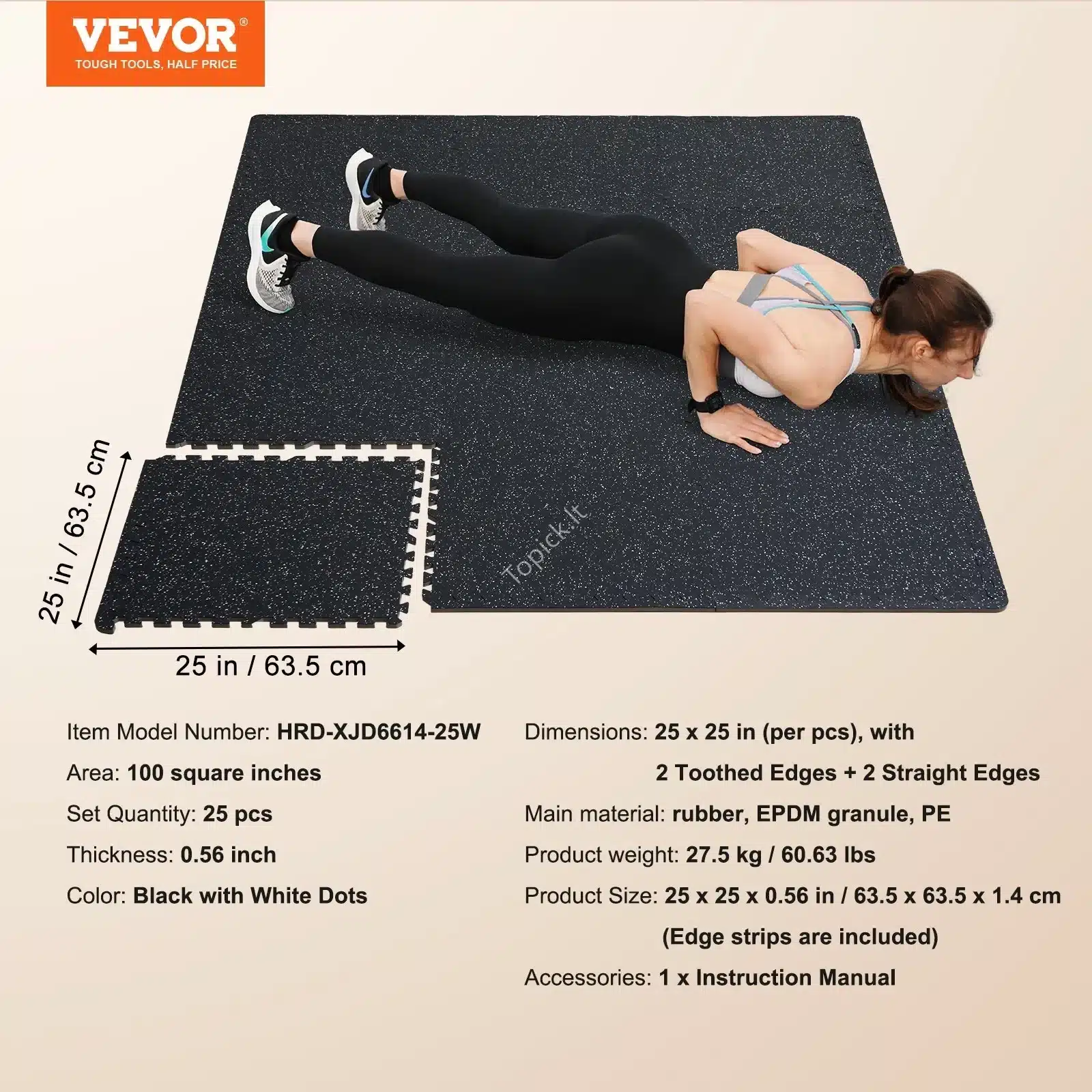 Sukurkite saugią ir komfortišką aplinką su šiuo 25 dalių EVA putų grindų kilimėlių rinkiniu. Kiekvienas kilimėlis matuoja 61 x 61 cm (610 x 610 mm) ir yra 14,22 mm storio, sudarydamas bendrą plotą, tinkamą įvairioms erdvėms.
