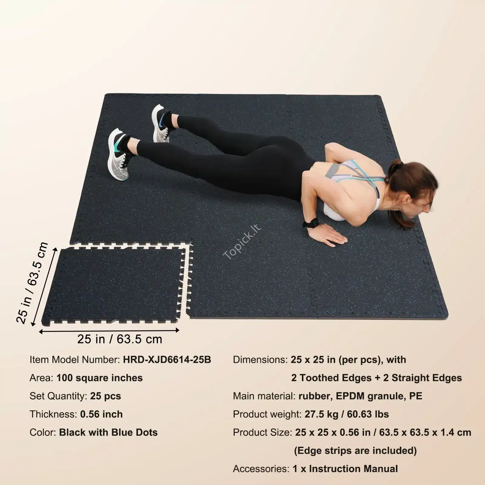 Sukurkite saugią ir komfortišką aplinką su šiuo 25 dalių EVA putų grindų kilimėlių rinkiniu. Kiekvienas kilimėlis matuoja 61 x 61 cm (610 x 610 mm) ir yra 14,22 mm storio, sudarydamas bendrą plotą, tinkamą įvairioms erdvėms.