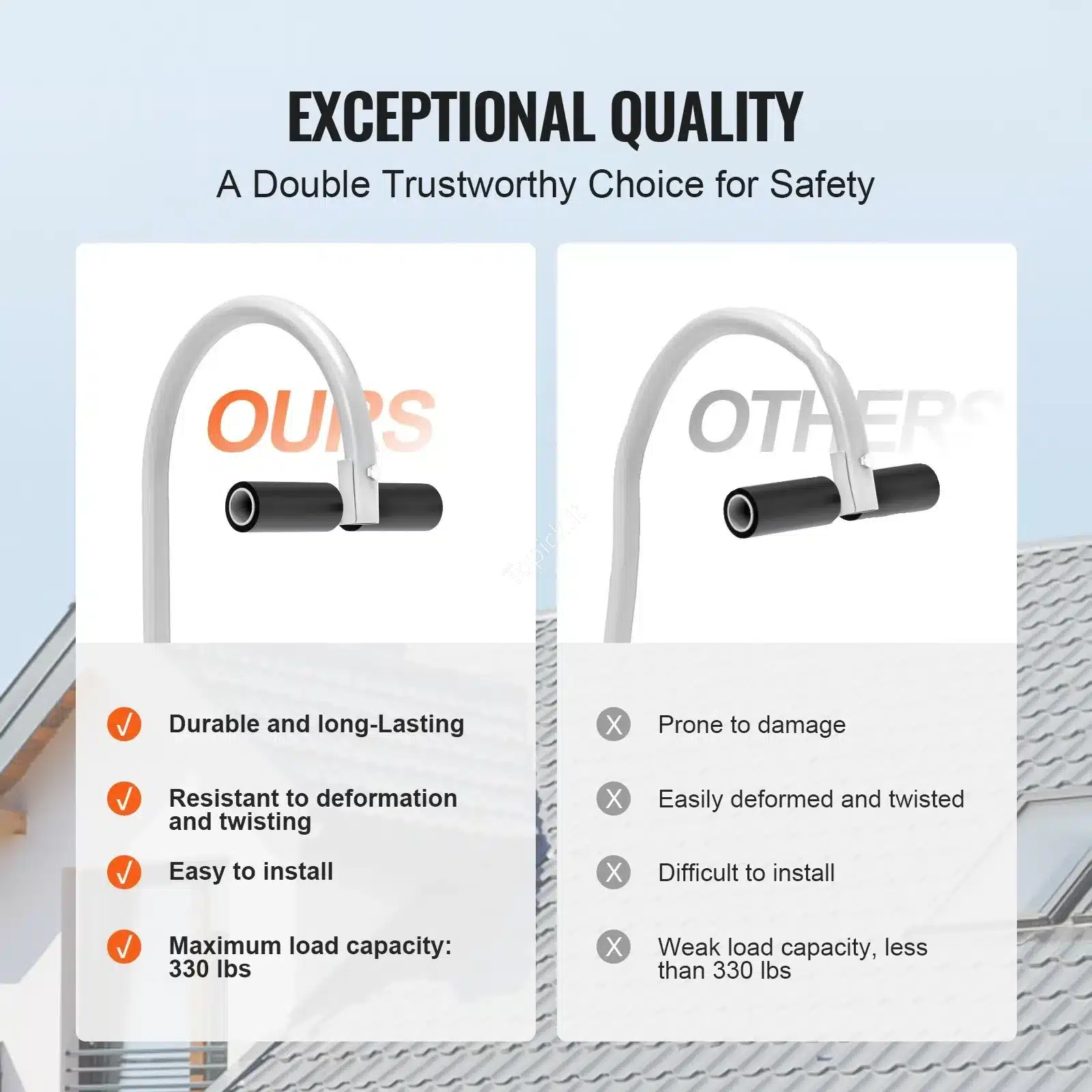 ✔️ Padidintas saugumas – sumažina kopėčių slydimo ir pasvyrimo riziką.