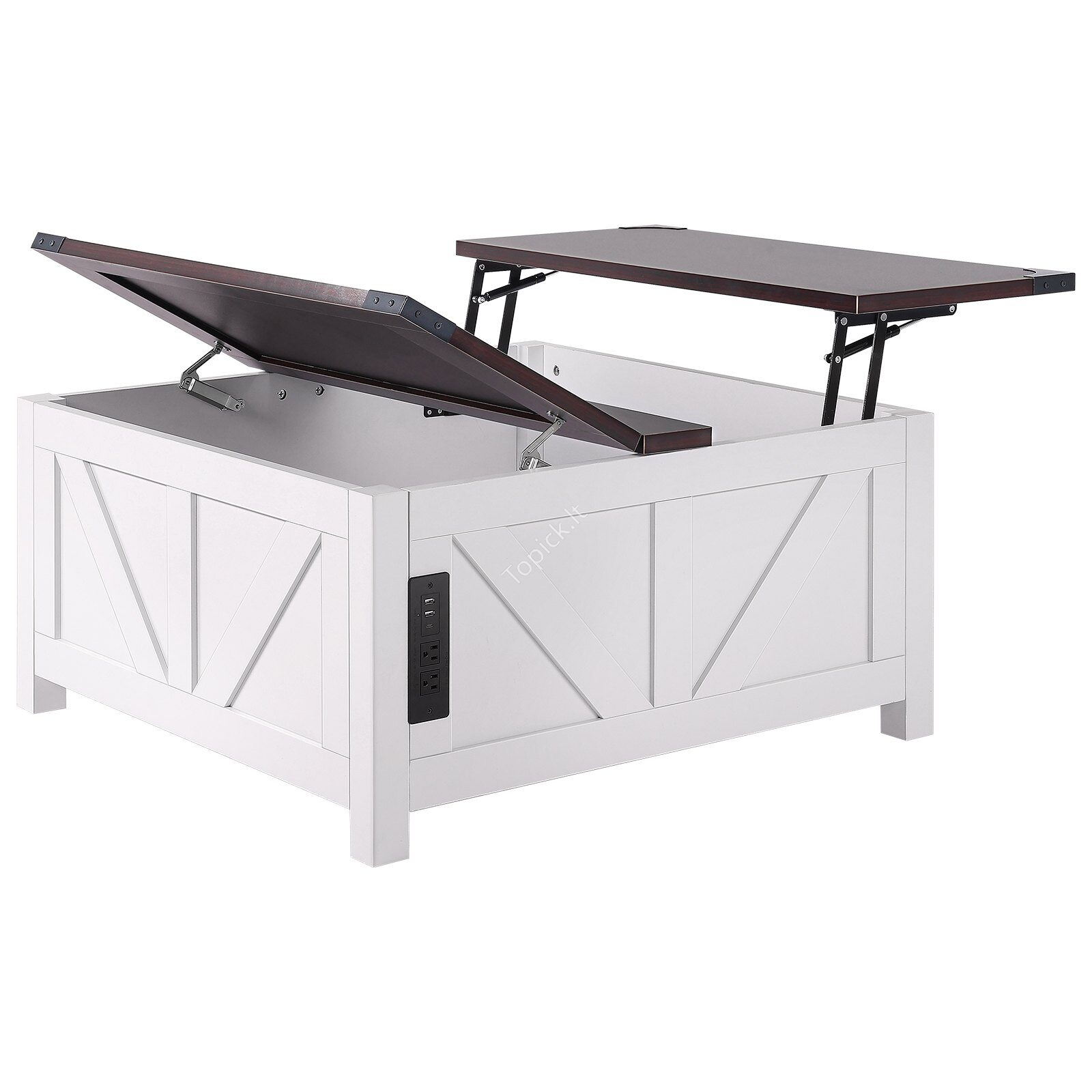 - Patogi įkrovimo stotelė: šis kavos staliukas su pakeliamu viršumi turi integruotą maitinimo lizdą, kuriame yra du USB prievadai, C tipo prievadas ir du kintamosios srovės lizdai. Tai yra patogus sprendimas įkrauti telefoną, nešiojamąjį kompiuterį ar kitus įrenginius, neribojamas lizdo vietos, taip pagerinant jūsų pramogas ar darbo patirtį.