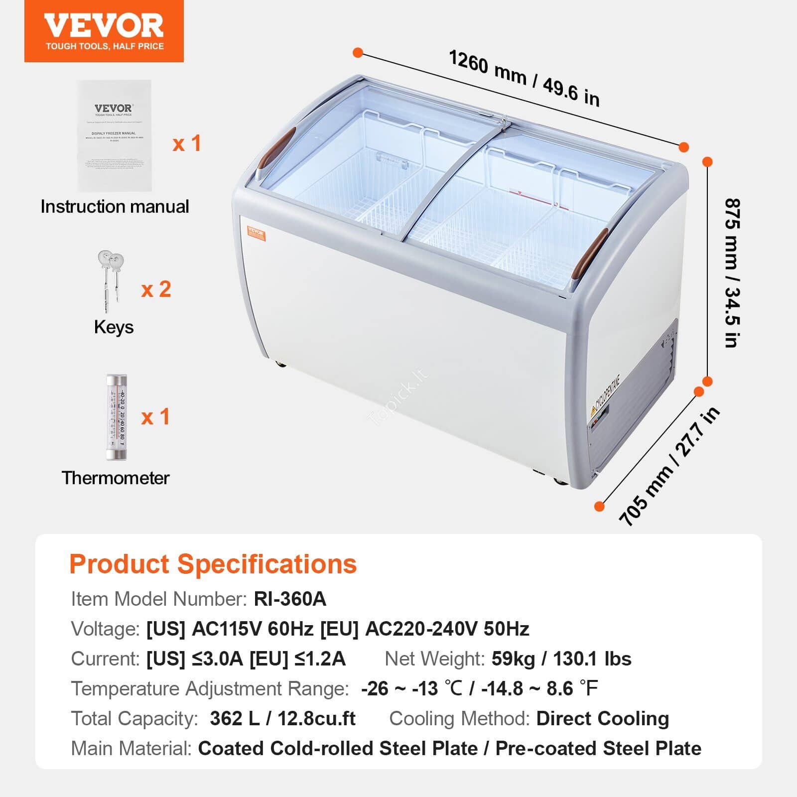 - Didelė saugojimo vieta: šaldiklis turi 12,8 kubinių pėdų (362 litrų) saugojimo vietos. Be spintelės viršuje esančių krepšelių, įrenginio apačioje yra papildomos saugojimo vietos. Čia galite laikyti papildomus indus, kad papildytumėte mėgstamų ledų ar kitų maisto produktų atsargas.