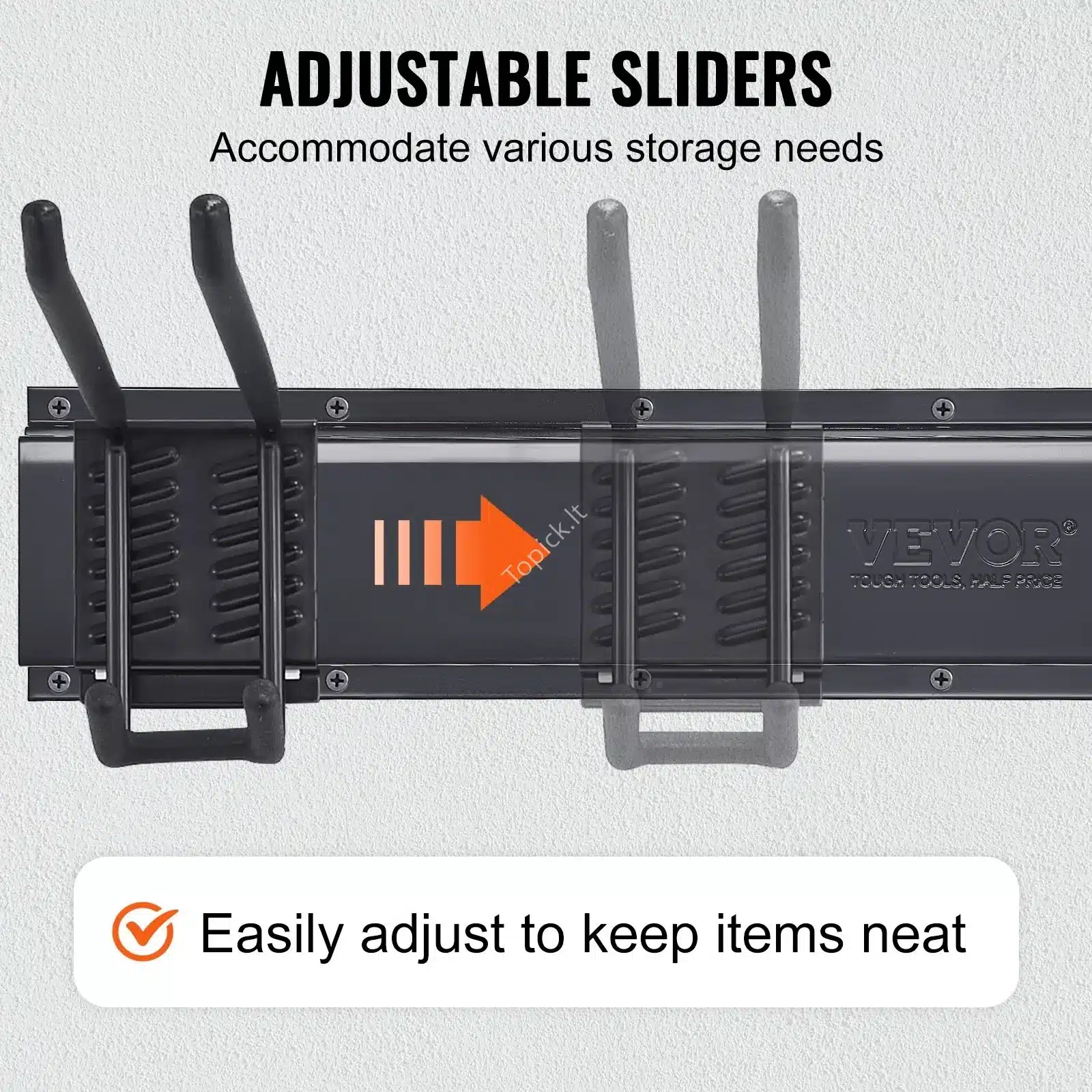 • Idealiai tinka organizuoti sodo įrankius, elektrinius įrankius, snieglentes, grėblius, virtuvės reikmenis, virves ir žarnas.