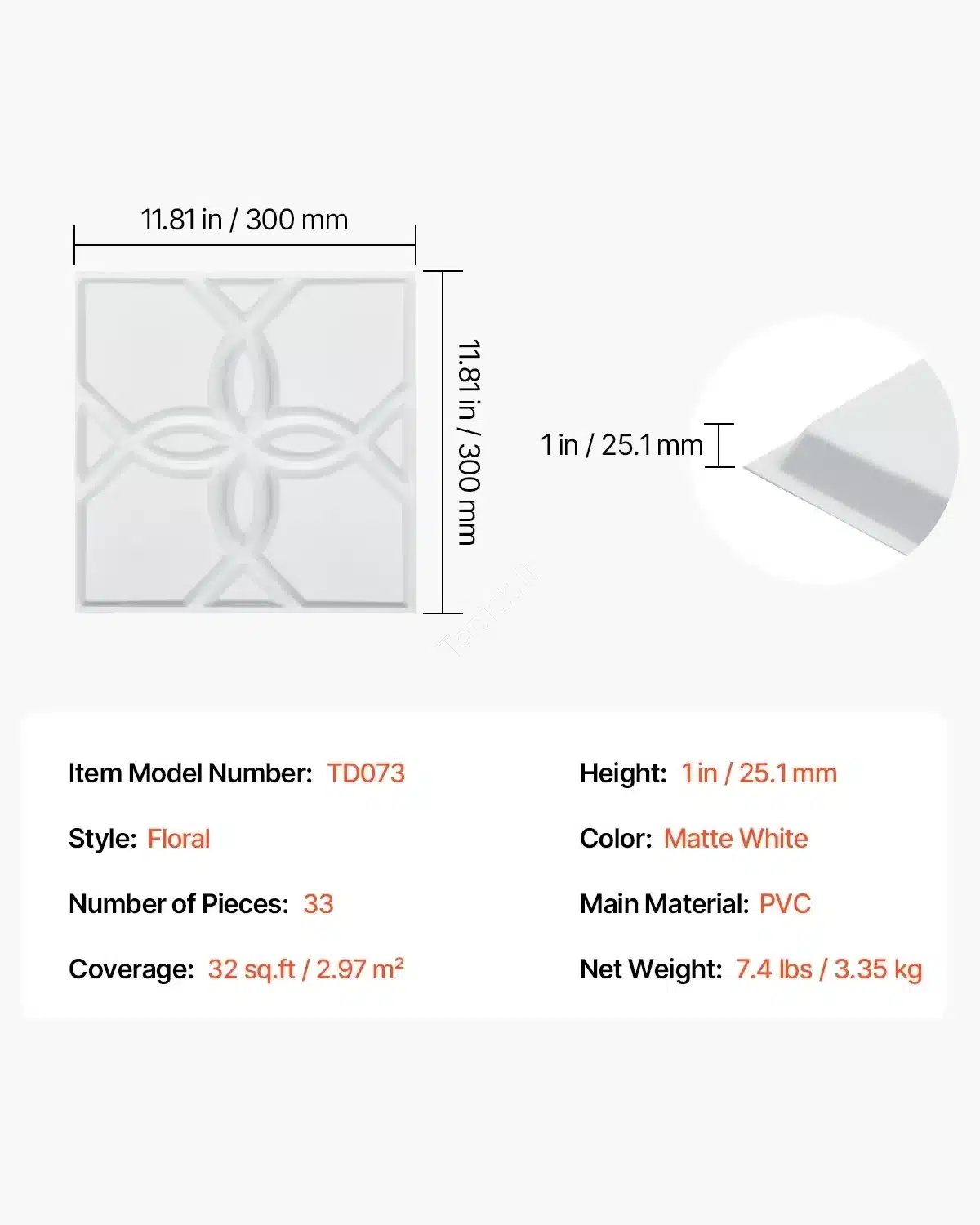 - Dizainas: Subtilus gėlių raštas. Galite dažyti plokštes norima spalva, kad pritaikytumėte jas prie savo interjero.