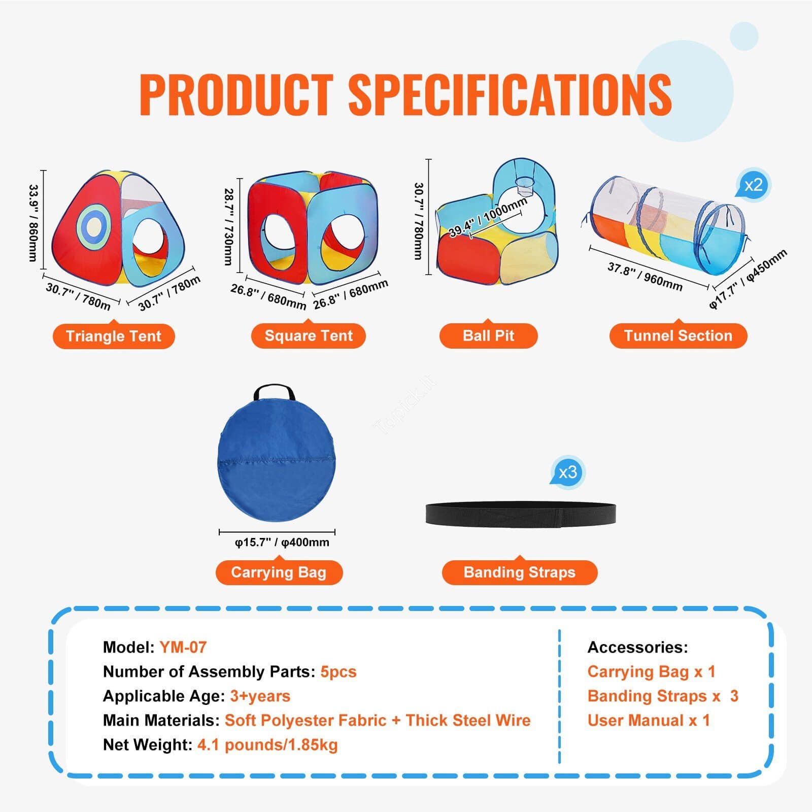 ✔️ 5-in-1 rinkinys: palapinės, tunelis, krepšinio lankas ir žaidimų zonos