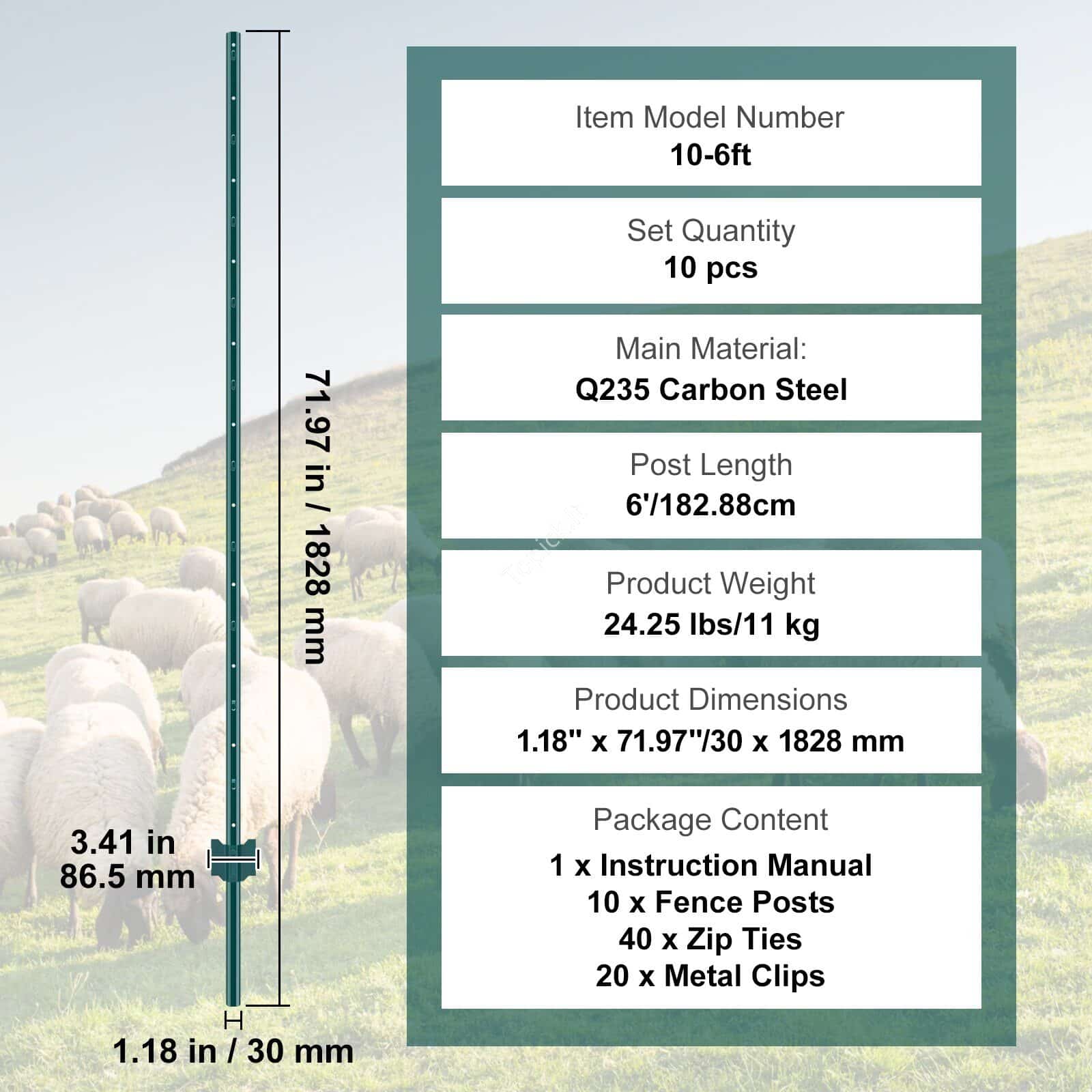 - Gaminio specifikacijos: Mūsų tvoros stulpai yra 6 colių (182,88 cm) ilgio ir kiekvienoje pakuotėje yra 10 stulpų.