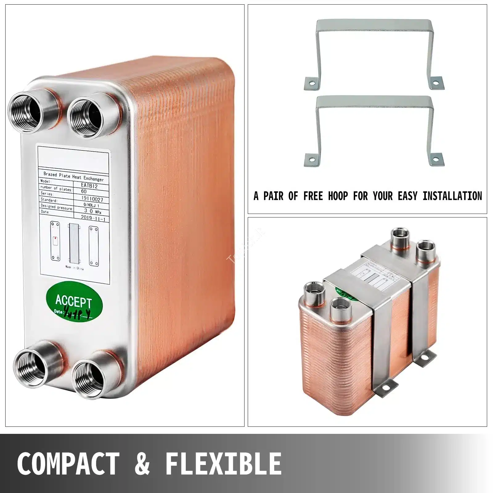 60 Plokštelių Šilumokaitis 1/2″ BSP FPT (194x72x161 mm) | 316L Nerūdijantis Plienas/Varis | Aukštas Slėgis 3,0 MPa