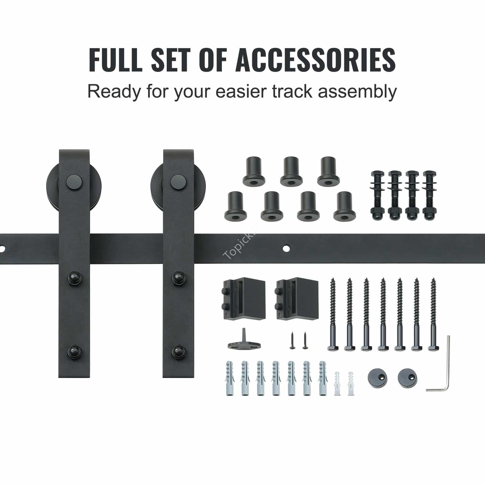 - Lengvas montavimas: viendurių stumdomų tvarto durų apkaustai yra su visomis būtinomis dalimis ir išsamiomis instrukcijomis, kad montavimas būtų lengvas. Į stumdomų durų apkaustus įeina: 2 x 1,2 m ilgio stumdomos bėgeliai, 2 x J formos pakabos, 7 x plastikinės poveržlės, 2 x anti-džemperiai, 2 x durų atramos, montavimo instrukcijos ir kitos tvirtinimo detalės. (Atkreipkite dėmesį: tik techninė įranga, tvarto durys neįtrauktos.)