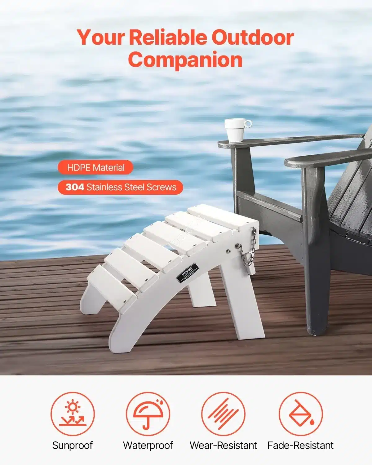 • Patogumas: puikiai pritaikyta prie Adirondack kėdžių, leidžia patogiai ištiesti kojas.