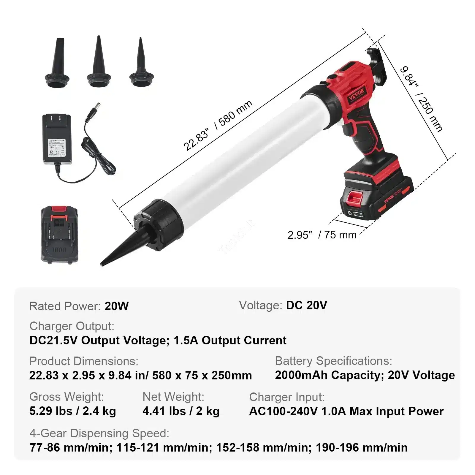 Akumuliatorinis Hermetiko Pistoletas 🔋 (600 ml / 20 V), Profesionalus Sandarinimas, 270 kg Jėga, 4 Greičių Reguliavimas, Be Laidų 🏠✨