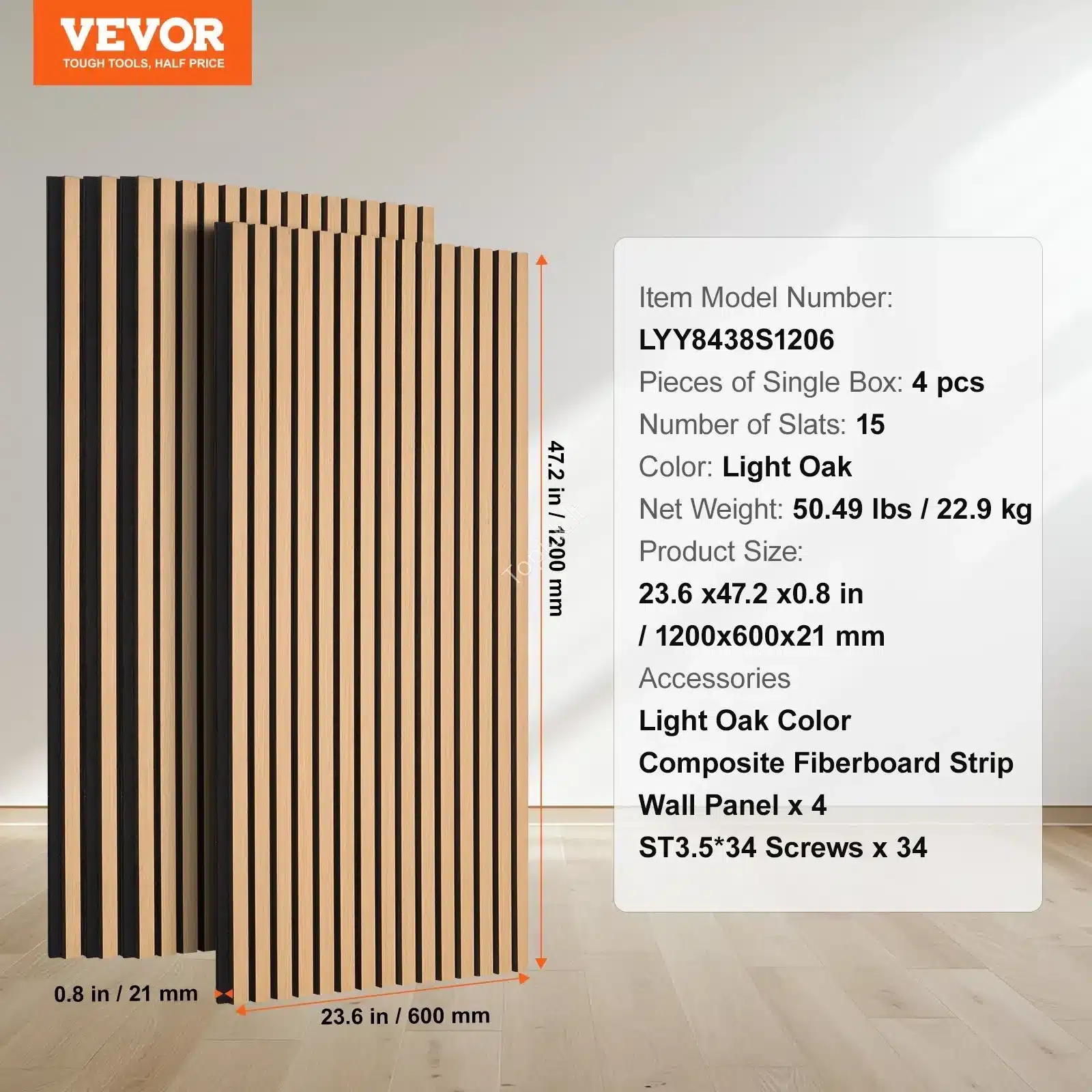Akustinės sienų panelės, 4 vnt. / 1200×600 mm, šviesaus ąžuolo spalvos🖼️