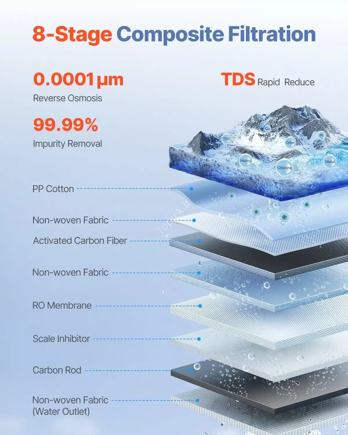 Ieškote patikimo sprendimo, kaip užtikrinti švarų geriamąjį vandenį namuose? 💧 Šis atvirkštinio osmoso vandens filtras yra puikus pasirinkimas! Jis užtikrina 8 pakopų filtravimą, o osmoso membrana gali pašalinti nešvarumus iki 0,0001 μm, todėl vanduo taps itin švarus ir skanus. 🤩