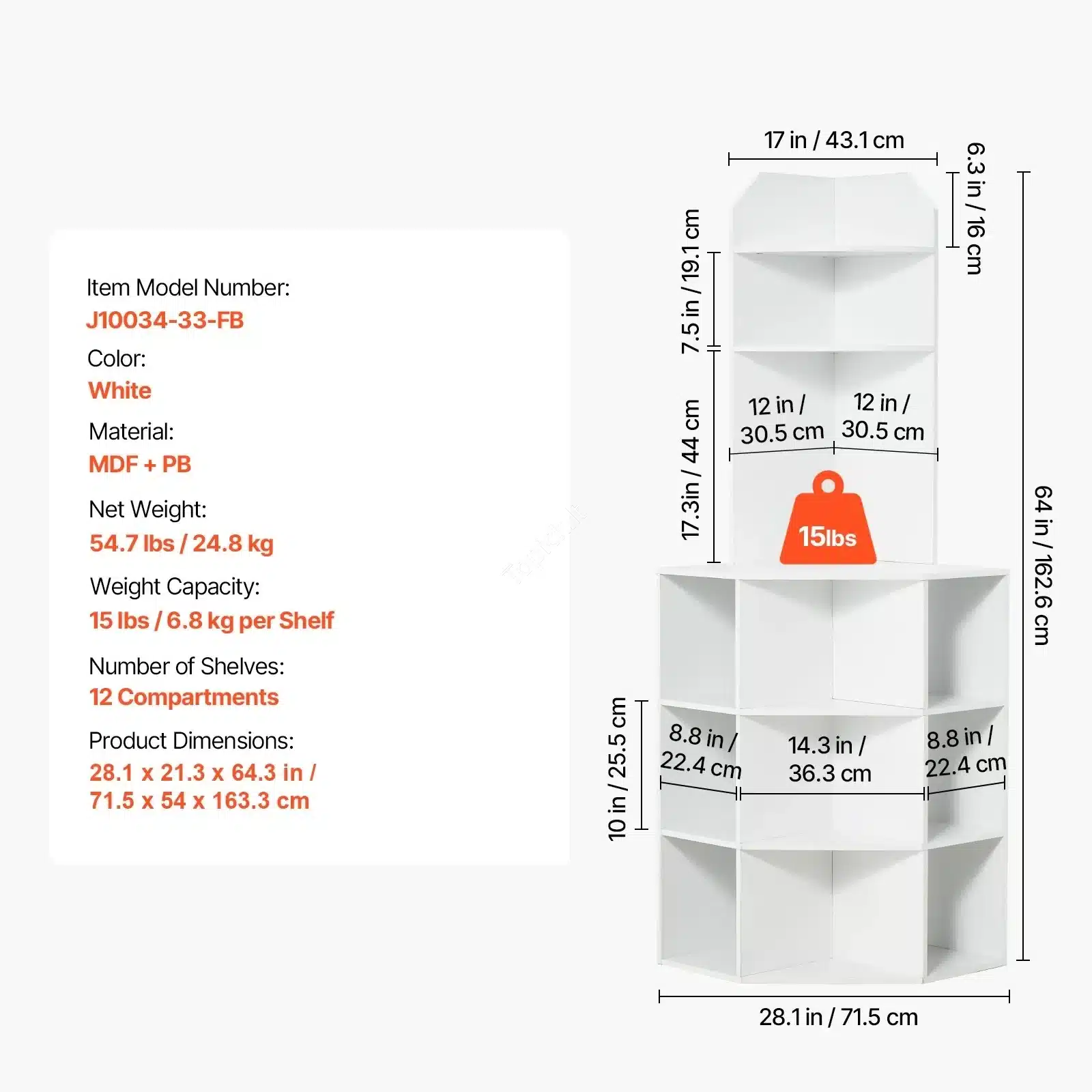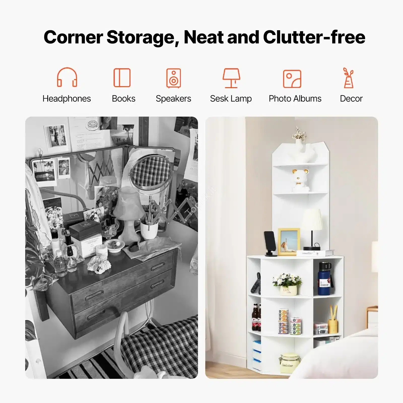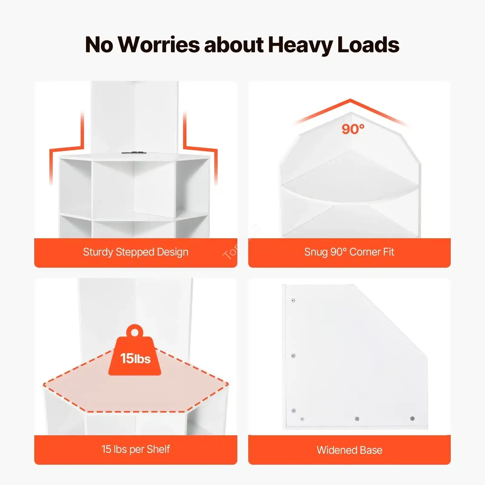 Aukšta Kampinė Spintelė su 6 Lygiais,Balta, 71,5 x 54 x 163,3 cm