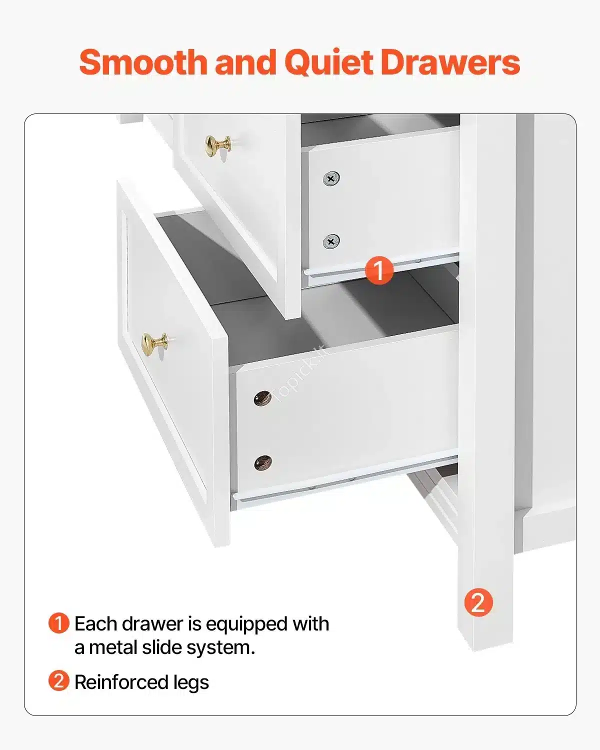 - Patogumas ir Saugumas: Visi stalčiai turi metalinius bėgelius, užtikrinančius sklandų darinėjimą, net kai jie pilni. Svarbiausia – komplekte rasi apsaugos nuo apvirtimo priemonę, kad tavo namai būtų saugūs.