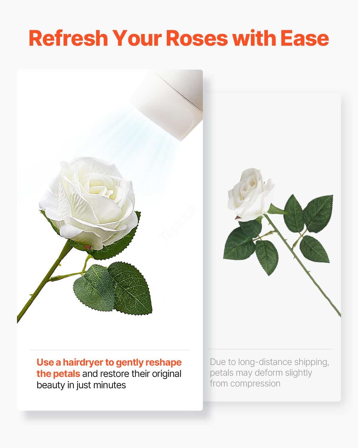 Ieškote elegantiškų ir ilgaamžių gėlių dekorui? 🌹 Šis dirbtinių baltų rožių rinkinys puikiai tinka vestuvėms, šventėms, vakarėliams ar namų dekoravimui. Šios dirbtinės rožės atrodo lyg tikros, tačiau joms nereikia jokios priežiūros! ✨