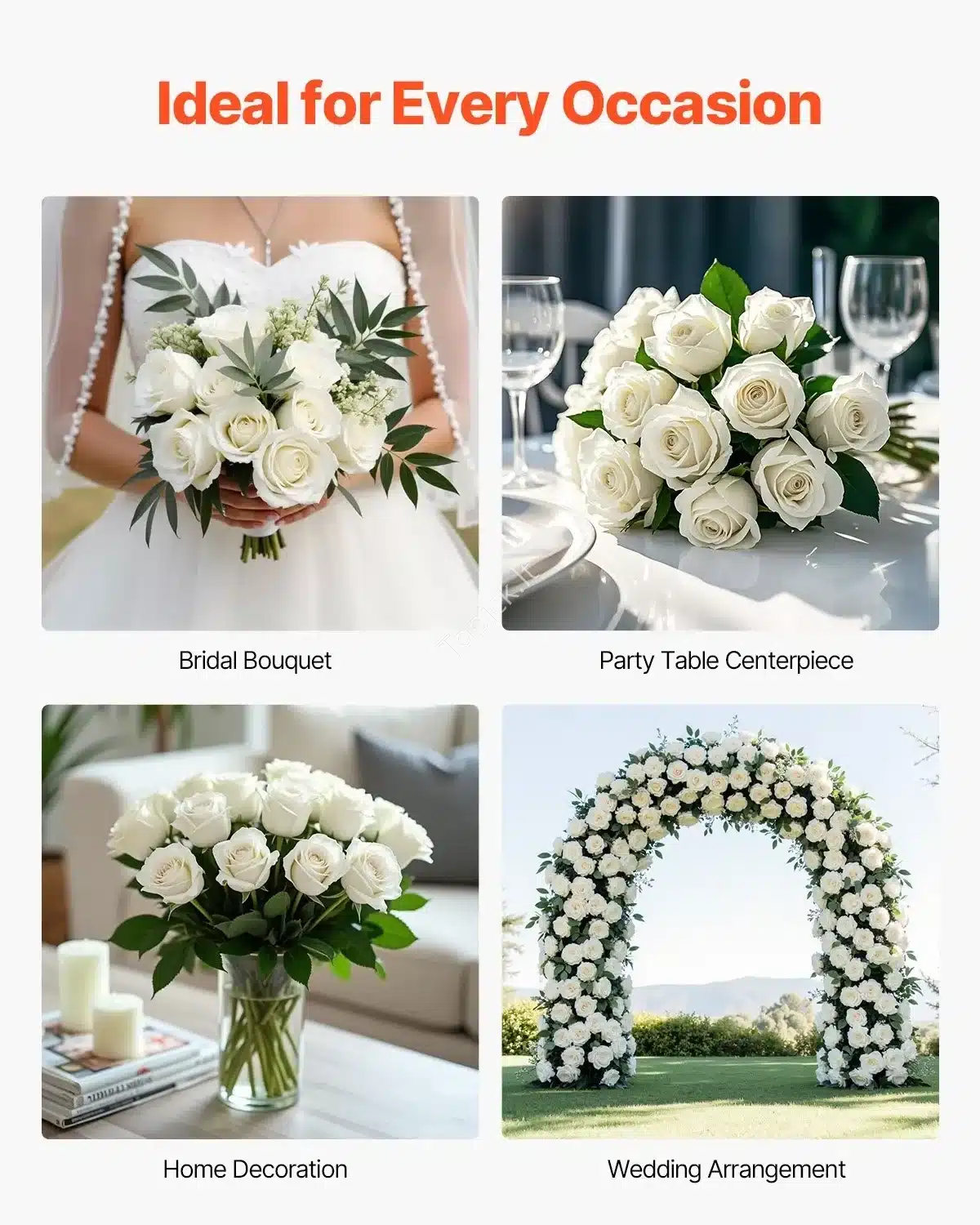 - Pritaikymas: Puikiai tinka vestuvių dekoracijoms, nuotakos puokštėms, tortų puošimui, stalo dekorui ir kitiems gėlių kompozicijų kūrimo projektams.