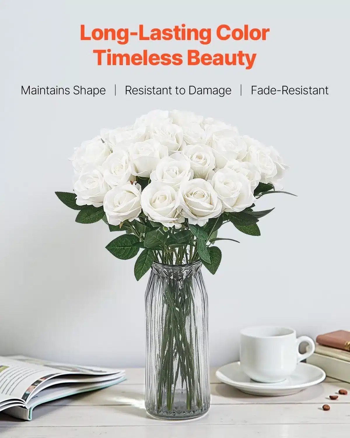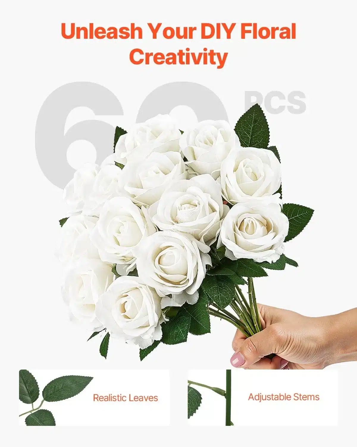 Ieškote elegantiškų ir ilgaamžių gėlių dekorui? 🌹 Šis dirbtinių baltų rožių rinkinys puikiai tinka vestuvėms, šventėms, vakarėliams ar namų dekoravimui. Šios dirbtinės rožės atrodo lyg tikros, tačiau joms nereikia jokios priežiūros! ✨