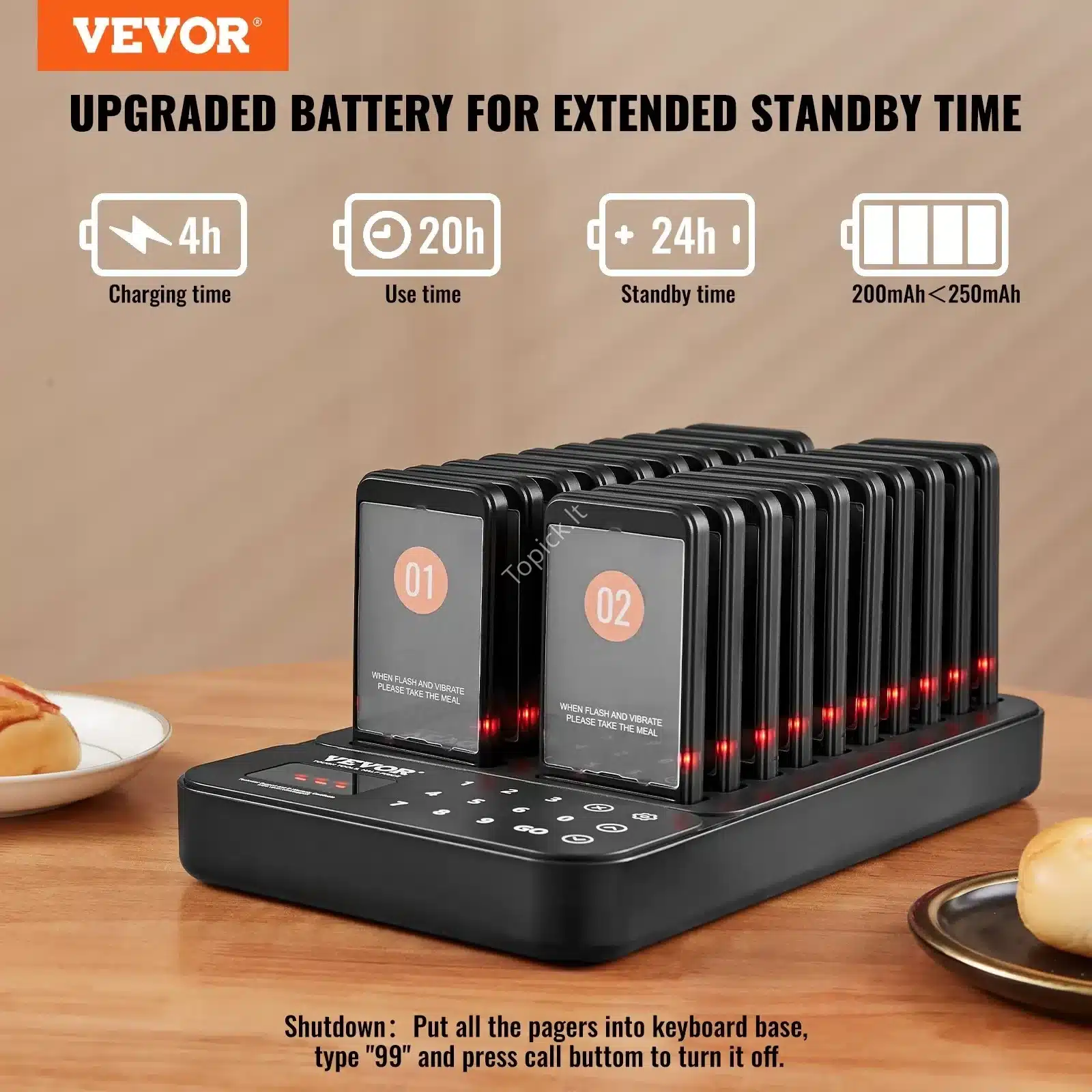 Belaidis restorano kvietimų signalas su 20 klientų kvietimo įrenginiais | Vibracija & LED indikatorius | 400 m diapazonas