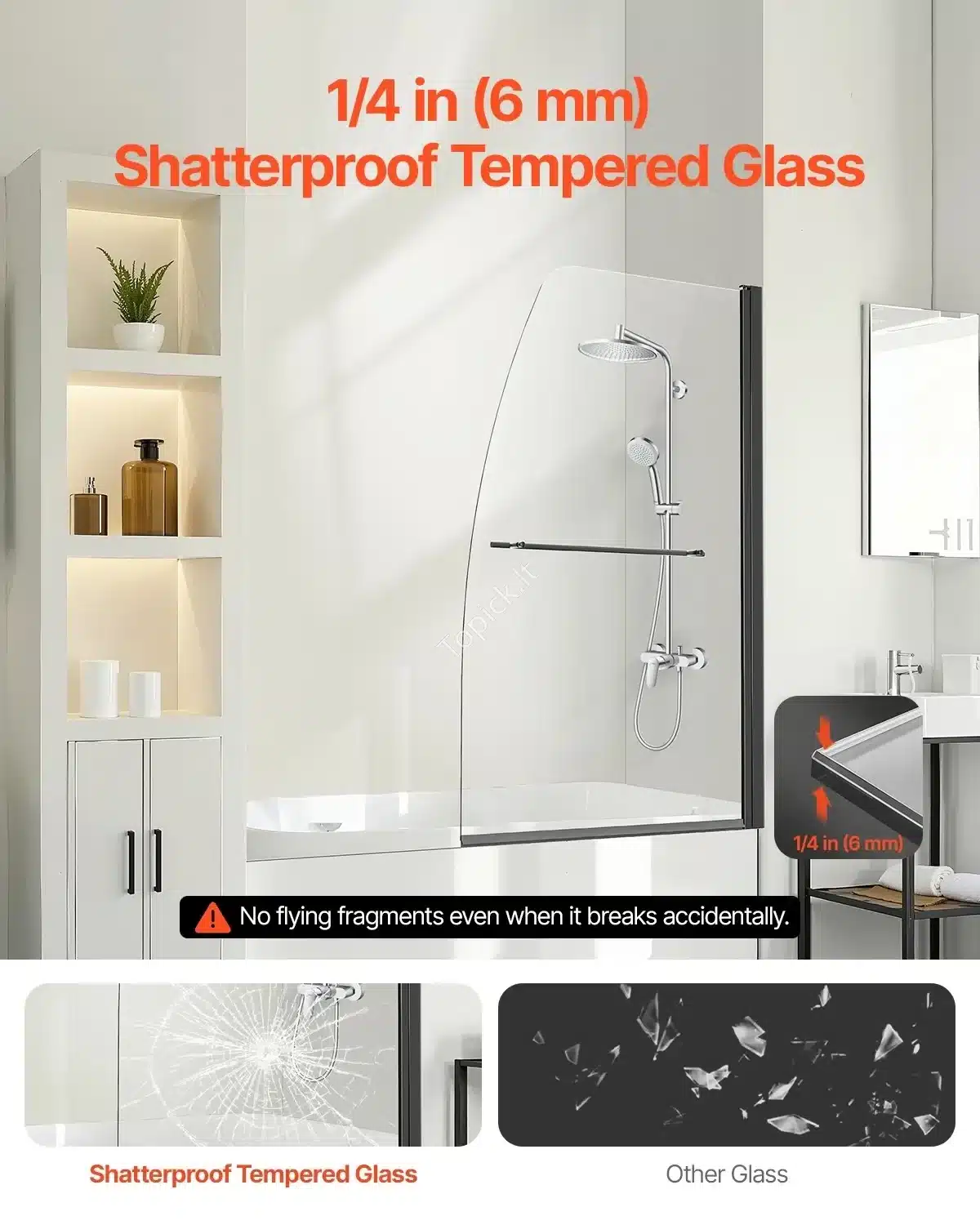 - Stiklas: Grūdintas, 6 mm storio stiklas, atsparus dūžiams.