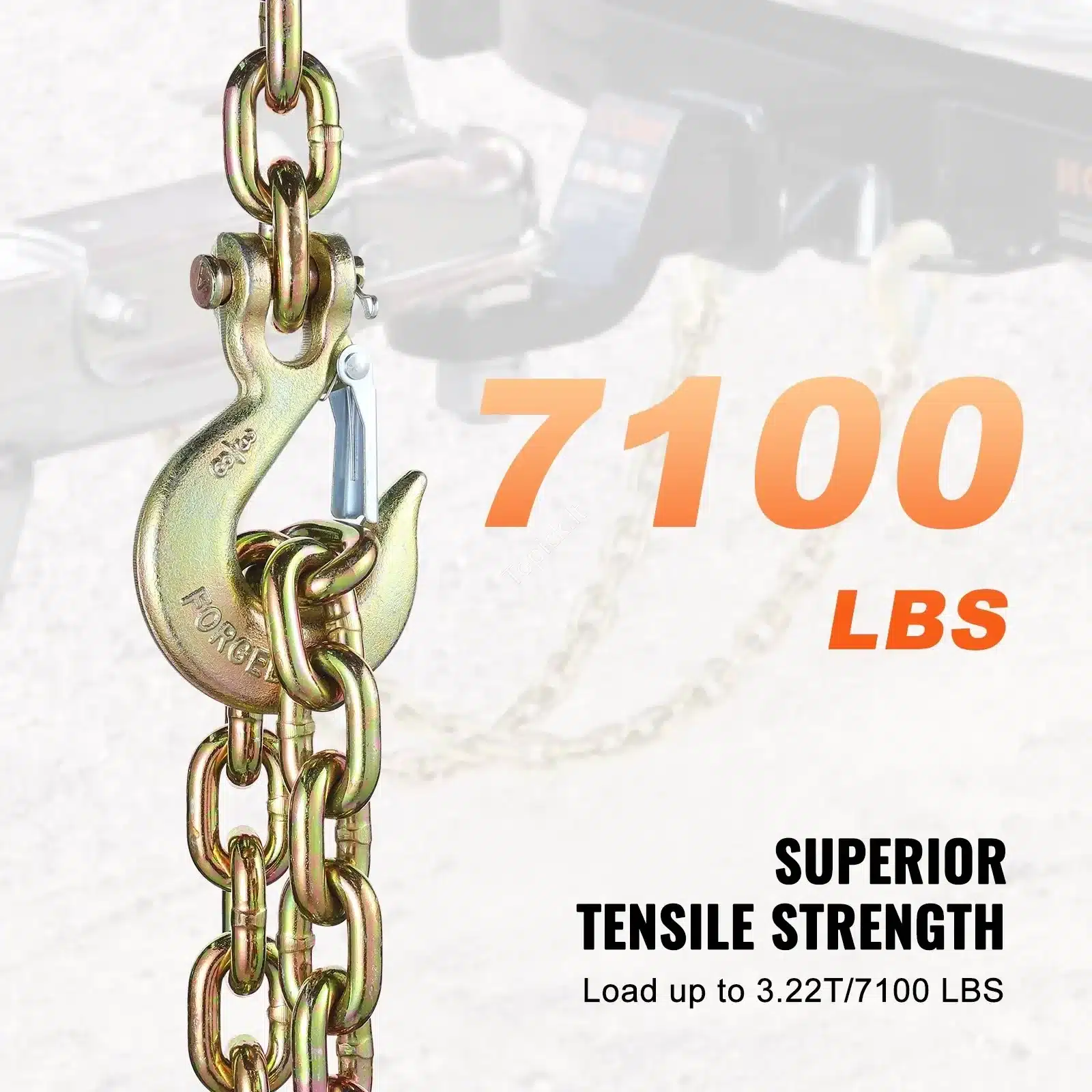 💪 Kiekviena grandinė atlaiko iki 3,22 t (3220 kg) darbinę apkrovą, todėl tai idealus pasirinkimas statybų, miško ūkio ar sunkvežimių sektoriui.