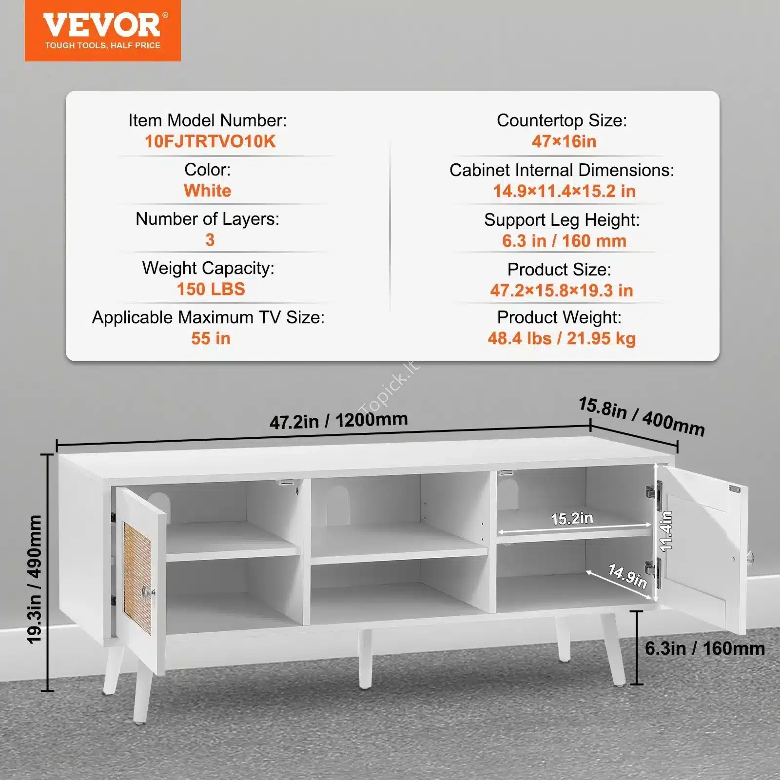 Ieškai, kaip atnaujinti savo svetainės interjerą, suteikiant jam jaukumo ir šiuolaikinės mados prieskonio? Ši 120 cm pločio TV spintelė puikiai atspindi Boho / Retro stilių ir taps pagrindiniu tavo namų akcentu! Elegantiška balta spalva derinama su rankomis pinto natūralaus rotango durimis, kurios ne tik atrodo nuostabiai, bet ir praleidžia nuotolinio valdymo pultelių signalus.