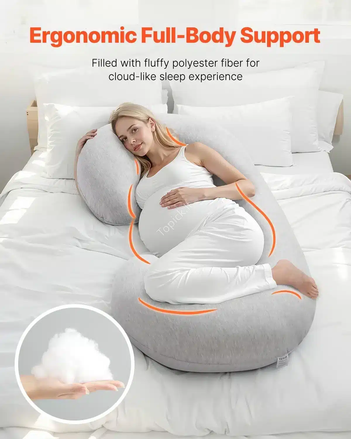 • Viso Kūno Atrama. Ergonomiška C forma prisitaiko prie Tavo kūno, suteikdama visapusišką atramą galvai, kaklui, nugarai, pilvui, klubams ir kojoms. Tai padeda sumažinti nugaros spaudimą, pečių įtampą ir kojų tinimą. ☁️