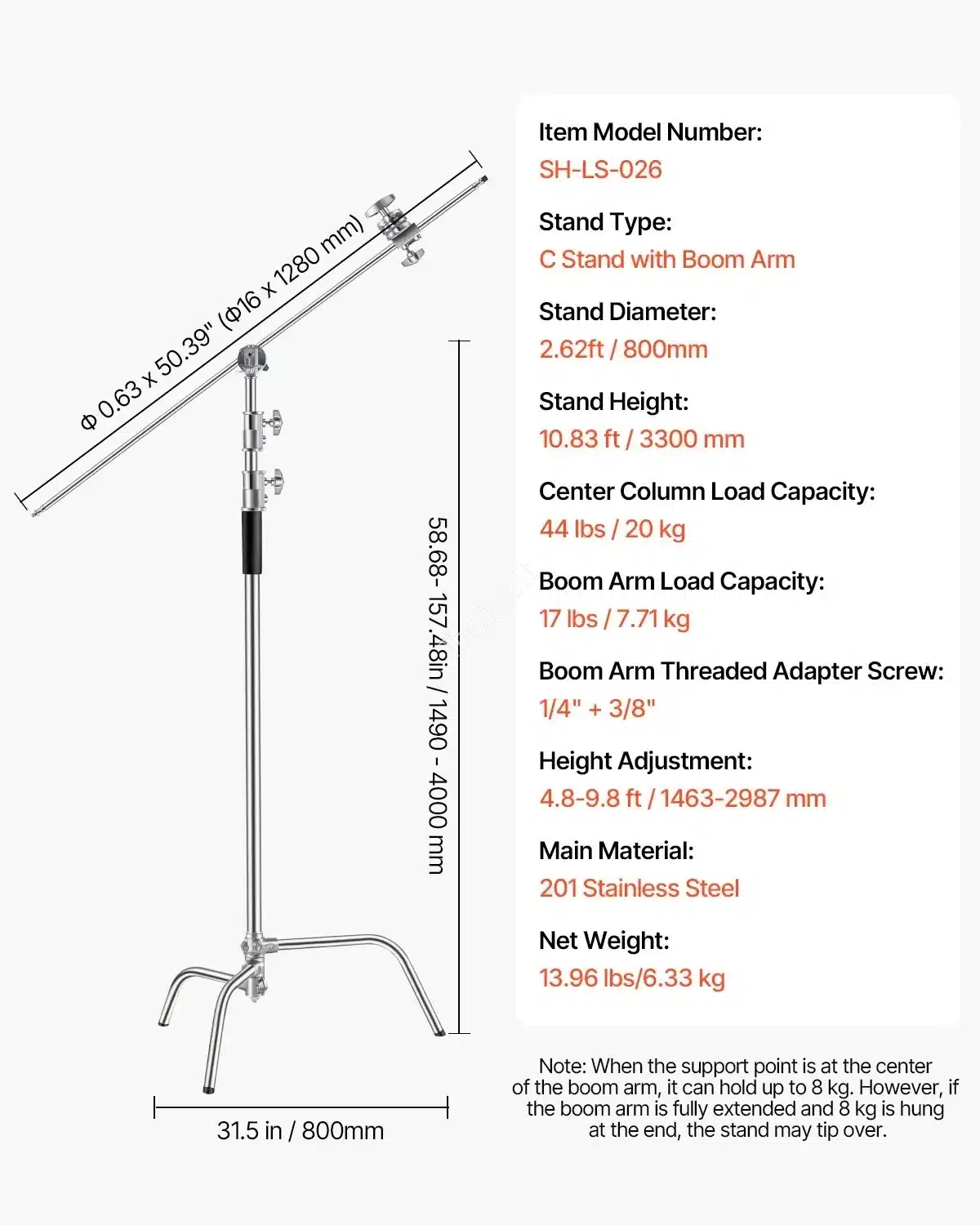 Ieškote profesionalaus sprendimo studijos apšvietimui ir įrangai? Šis C-Stand stovas su svirtimi yra puikus pasirinkimas fotografams. Pagamintas iš tvirto nerūdijančio plieno, jis užtikrina maksimalų saugumą ir stabilumą jūsų brangiai įrangai. 💡